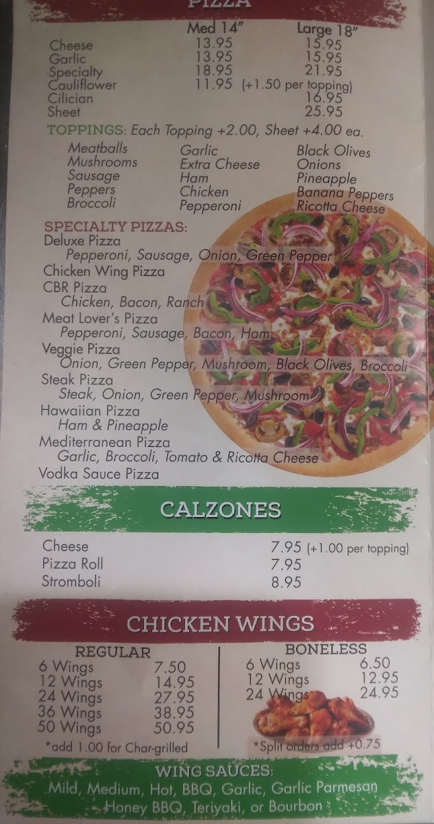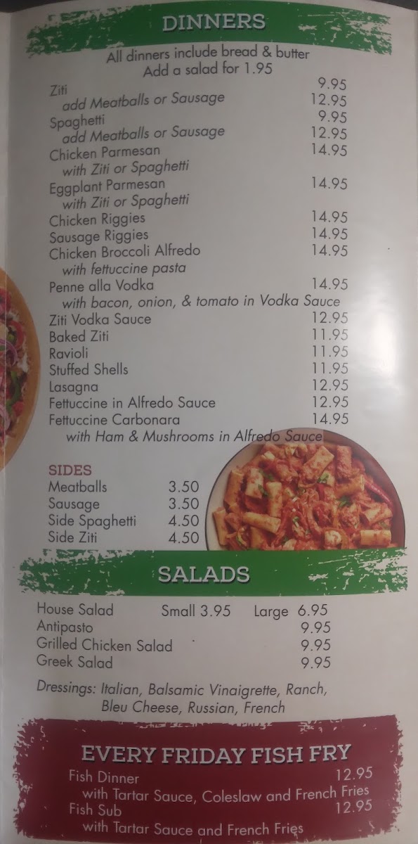 The menu at Chittenango Pizza offers a straightforward selection of American and Italian-inspired dishes, perfect for casual dining occasions. You'll find comforting options that range from classic pepperoni and cheese pizzas to heartier plates like chicken riggies and baked ziti, designed to satisfy both quick bites and relaxed meals.